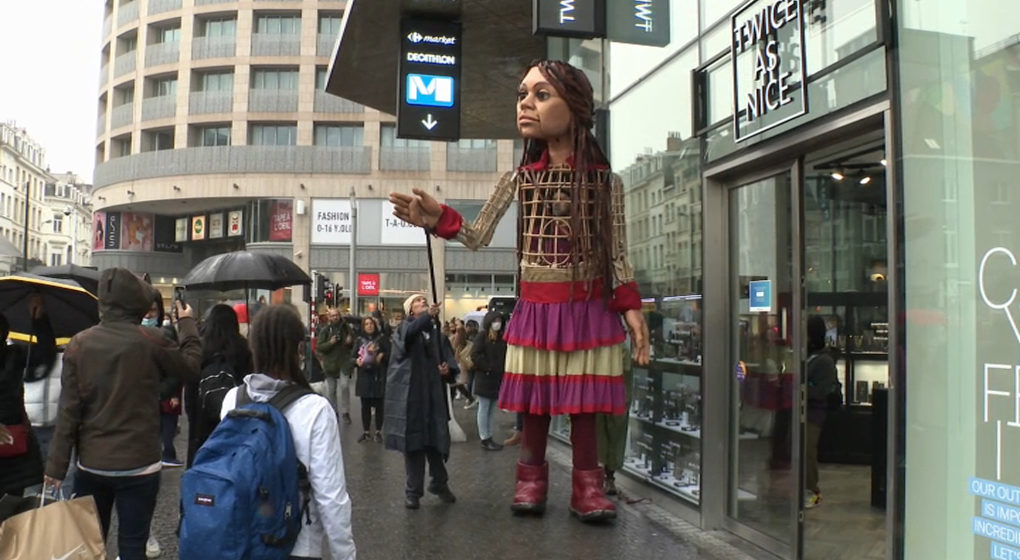 Amal, une marionnette géante, traverse l’Europe pour sensibiliser à l’accueil des réfugiés