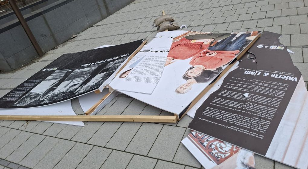 La quasi-totalité des supports ont été retrouvés gravement endommagés, certains ayant été littéralement arrachés à leurs structures, détaille l’association. Cette exposition présentait des portraits de deux mètres sur deux, mettant en lumière le vécu et la parole des victimes des attentats du 22 mars.