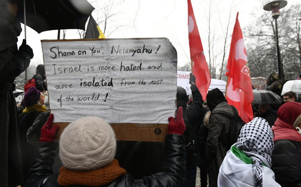 Ce lundi, le Premier ministre Israélien Benyamin Netanyahou est reçu à Bruxelles pour une réunion “informelle” avec les ministres des Affaires étrangères de l’Union européenne. Le 7 décembre dernier, une trentaine d’associations avaient appelé au boycott. Une manifestation a eu lieu ce lundi matin au rond-point Schuman.