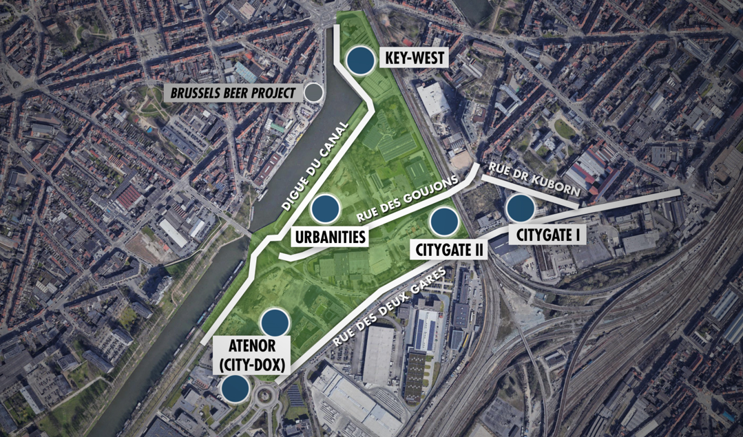 ►Le projet City Dox, développé par le promoteur Atenor prévoit la construction de près de 1000 logements. Une partie de l’ensemble (une centaine de logements), situé au coin du boulevard Industriel et de la rue du Développement, est construit et habité. Il comprend également une séniorie. Le chantier du deuxième ensemble doit commencer prochainement le long du canal. Il comprend notamment trois « tourettes » de 14 étages, de 170 logements chacune. Le projet comprend aussi du bureau et une école.