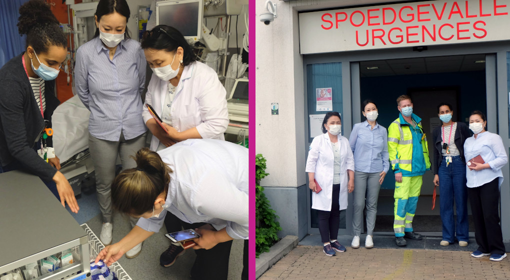 Ainsi, les deux médecins mongoles ont pu visiter les deux sites de l’hôpital, Horta à Laeken et Paul Brien à Schaerbeek. “Sur le site Horta, notre homologue Quentin Bocquet a pris son temps pour nous explique son travail quotidien : il nous a présenté le fonctionnement de son service d’urgences et le rôle de chef-infirmier“, indiquent Lunchuluun Narankhuu et Oyunchimeg Bataa, respectivement cheffe des soins intensifs et de l’anesthésie, et infirmière-cheffe des urgences de l’hôpital de Khovd. “Sur le site Brien, nous avons été accueillies par Séverine Weingaertner qui est super intelligente et compétente ! Nous avons visité son service moderne et efficace, et ensuite nous avons pu partager notre avis sur des problématiques du métier en tant que femmes“.