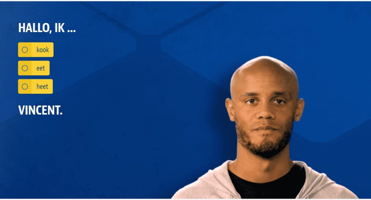Le footballeur prononce des phrases simples en vidéo et nous propose ensuite de les traduire en néerlandais. “Bonjour, je m’appelle Vincent”, ou encore “Je viens pour l’offre d’emploi”. Le site internet nous informe ensuite sur les solutions en langues proposées par Actiris, il est possible de s’inscrire à une séance d’information.