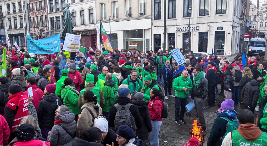 Les militants se sont rassemblés dès 9h00 place Saint-Jean. Outre le front commun syndical, d’autres associations, dont Médecins du Monde, étaient présentes dans la foule. Une dizaine de travailleurs, représentant notamment les secteurs des maisons de repos, des hôpitaux, de l’insertion socioprofessionnelle, des CPAS ou encore de l’aide au logement, ont pris tour à tour la parole pour expliquer la situation dans leur secteur.