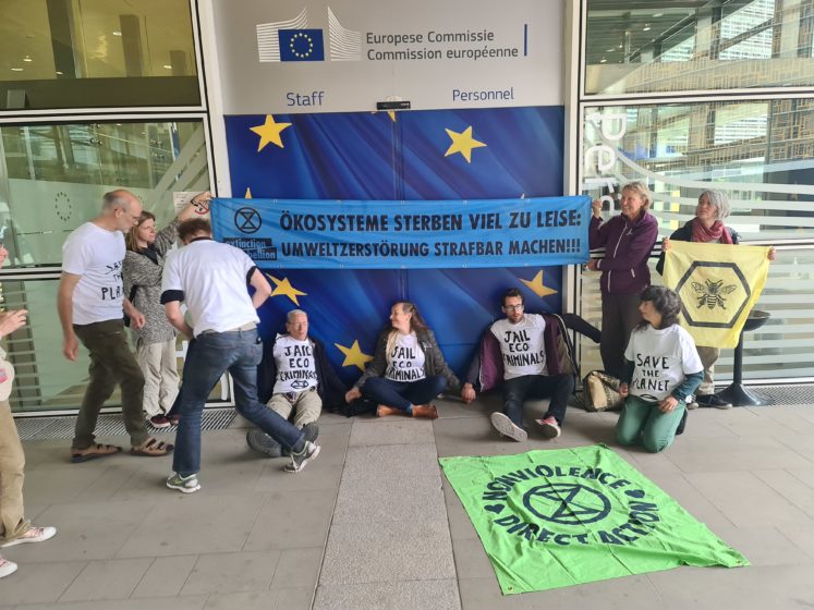 Ils demandent l’introduction immédiate d’une loi sur l’écocide aux niveaux national et européen. L’action a débuté lundi à 08h00 lundi matin. Les services de sécurité de la Commission européenne et la police sont sur place.