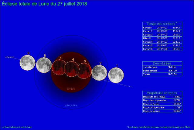 L’entièreté du cycle de l’éclipse lunaire ne sera toutefois pas visible sur le territoire, signale l’Observatoire royal de Belgique. La Lune se lèvera en Belgique au sud-ouest vers 21h30 et elle sera déjà totalement éclipsée. L’astre aura un aspect rougeâtre et sera observable ainsi jusqu’au terme de l’éclipse totale prévue à 23h13. La fin du cycle, c’est-à-dire la sortie progressive de l’astre de l’ombre et de la pénombre, sera visible jusque samedi à 00h19.