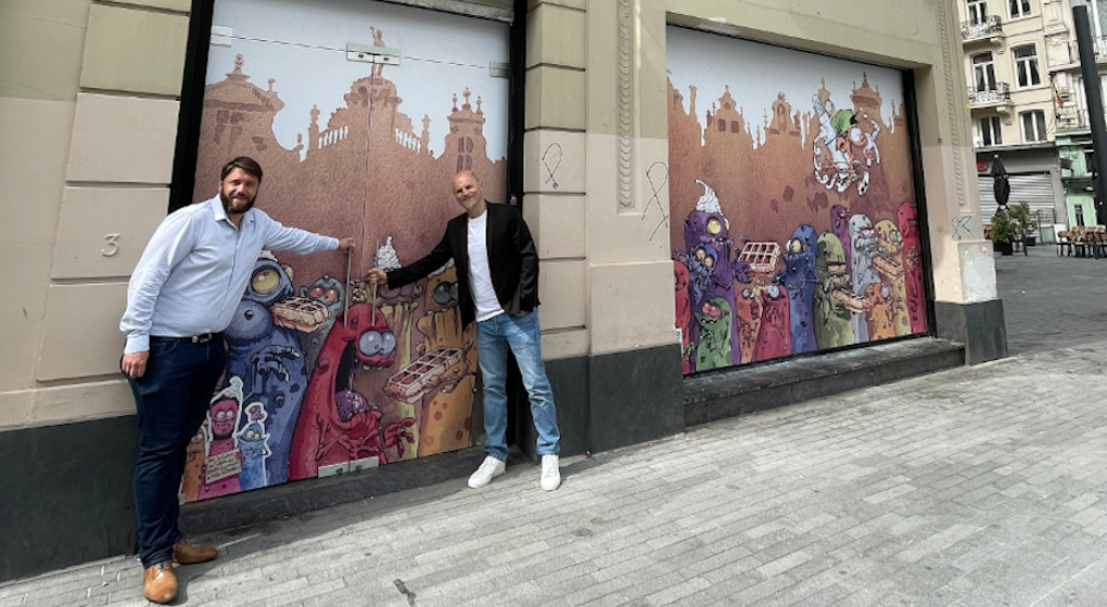 Depuis la fermeture de l’ancien magasin Ici Paris XL, au croisement du boulevard Anspach et la place de la Bourse, la vitrine était restée désespérement terne. Ce n’est désormais plus le cas : depuis ce samedi, la devanture est recouverte d’une fresque rendant hommage au héros de bande-dessinée Kid Paddle, créé dans les années nonante par le dessinateur bruxellois Midam.