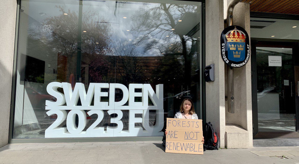 243e semaine de grève pour le climat. Aujourd’hui, je fais grève devant la représentation suédoise auprès de l’UE, à Bruxelles. La Suède, mon pays d’origine, assure actuellement la présidence du Conseil de l’UE. La semaine prochaine, les ministres se réuniront en Suède pour discuter entre autres de la déforestation“, explique-t-elle.