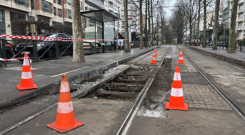 La circulation est interrompue entre les arrêts Roffiaen et Churchill, et des bus de remplacement sont prévus entre ces deux arrêts.