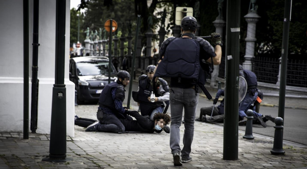 La police de Bruxelles-Ixelles réagit aux images d’un policier maintenant un manifestant au sol avec ses genoux