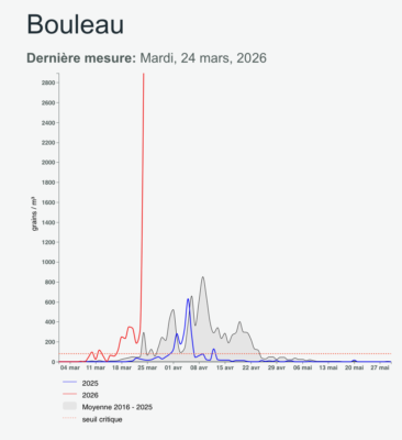 Cette année, la saison pollinique du bouleau a commencé beaucoup plus tôt, alors que la dispersion de son pollen n’intervient en moyenne qu’à la fin du mois de mars. Cette précocité de la présence de pollen de bouleau crée un autre effet : un chevauchement avec le pollen du noisetier et de l’aulne. Ces périodes de floraison se superposent de plus en plus souvent, entraînant pour les personnes allergiques une saison pollinique presque ininterrompue.