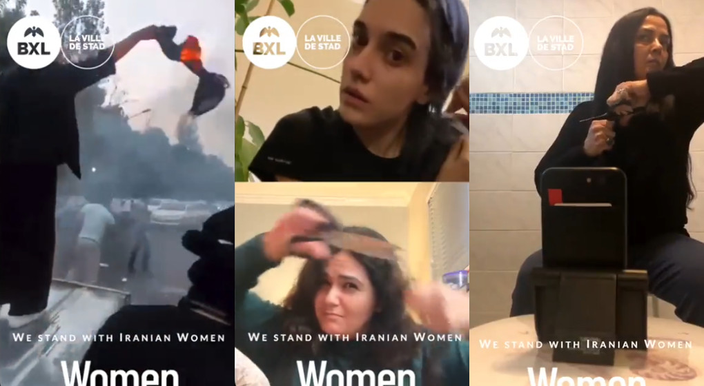 La Ville de Bruxelles diffuse les messages de femmes iraniennes sur des panneaux publicitaires