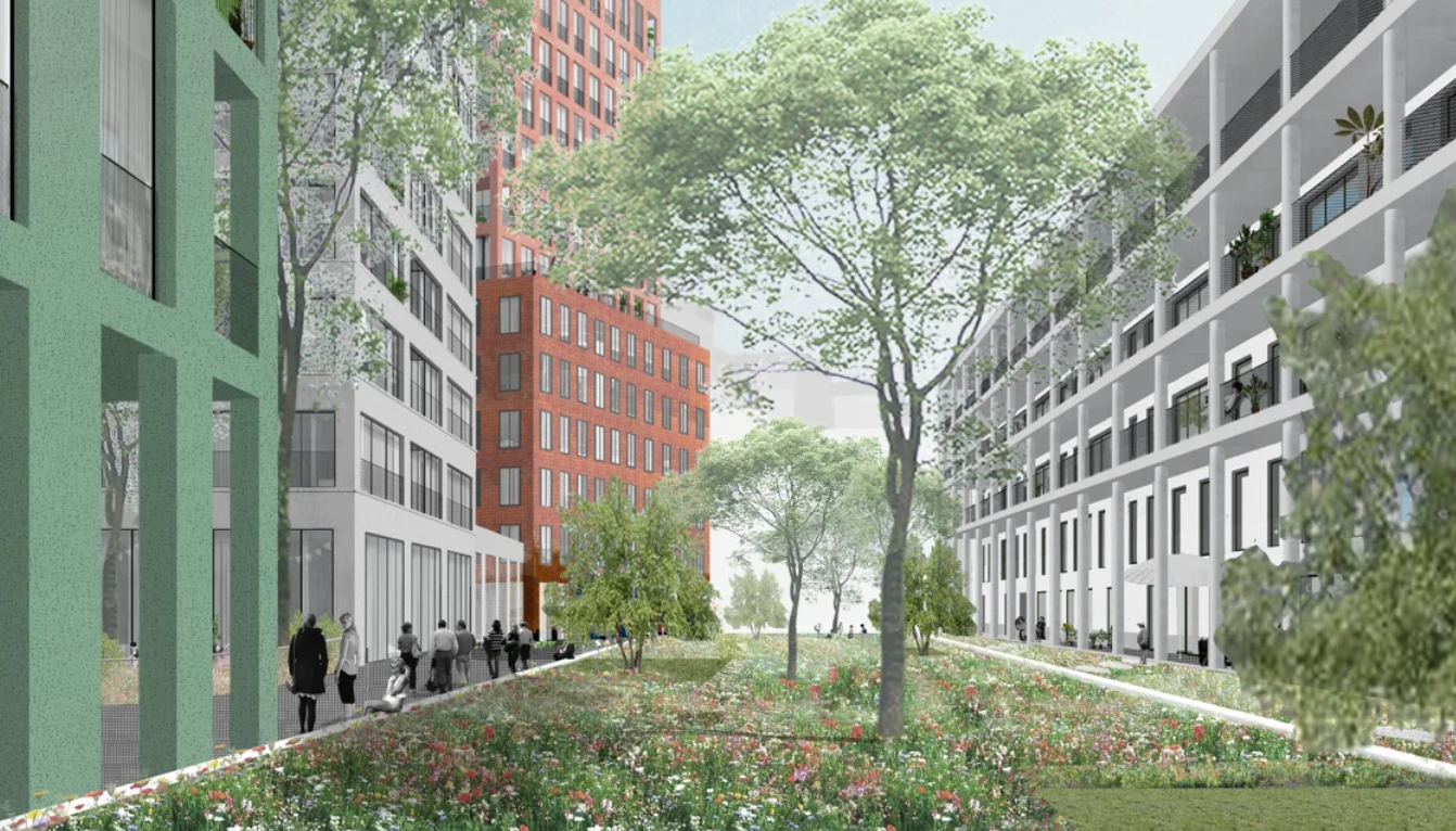 Le projet propose également, par la prolongation de la rue Le Lorrain au sein de l’îlot, de rétablir la liaison entre le quartier situé à l’arrière et le canal avec son futur parc au bassin Béco.