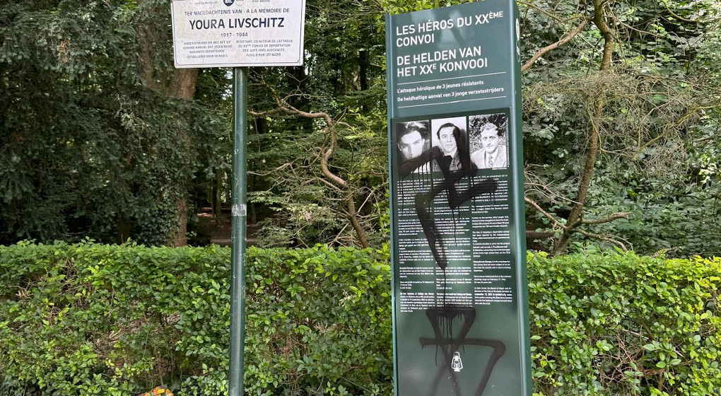 Ce dimanche, des passants ont observé un nouveau tag représentant une croix gammée ainsi que d’autres symboles néo-nazis sur la stèle de commémoration à l’attaque du XXe convoi.