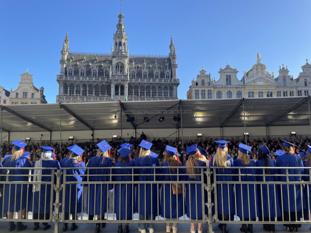 Vêtus de leur toge de diplômés, les étudiants ont été proclamés un par un sur le balcon de l’Hôtel de Ville de Bruxelles, où ils ont pu remercier leurs proches pour le soutien reçu lors de leurs années d’études. Ils ont ensuite pris place dans une tribune, face à leur famille et leurs amis. Les diplômes ne sont pas remis sur place, mais la cérémonie de proclamation a une grande valeur symbolique.