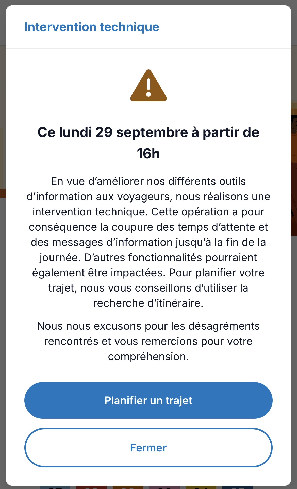 En cause : une mise à jour du logiciel réglant les horaires en direct. Cela affectera l’accès aux données notamment les temps d’attente des véhicules, ainsi que les informations relatives aux travaux en cours.