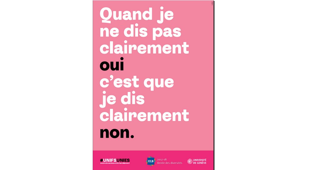 L’Université Libre de Bruxelles (ULB) lance ce jeudi une campagne d’affichage ainsi qu’un site internet contre le sexisme et le harcèlement sexuel à l’université. Le projet a été mené en collaboration avec l’Université de Genève, partenaire de la campagne #UNIFSUNIES contre le harcèlement et le sexisme”.
