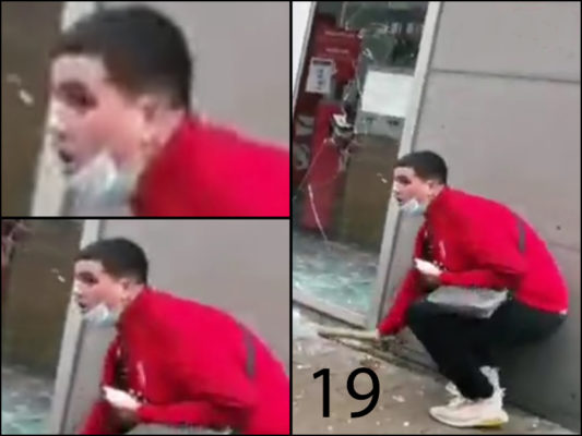 Le 19ème individu a de courts cheveux foncés. Au moment des faits, il portait un pantalon de training noir, un sweat rouge et des baskets blanches. Il était en possession d’un sac bandoulière gris.