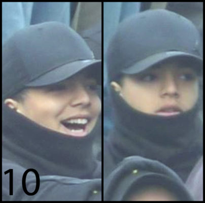 Le 10ème individu est une jeune femme. Au moment des faits, elle portait une casquette, une veste et un pull à col roulé noirs.