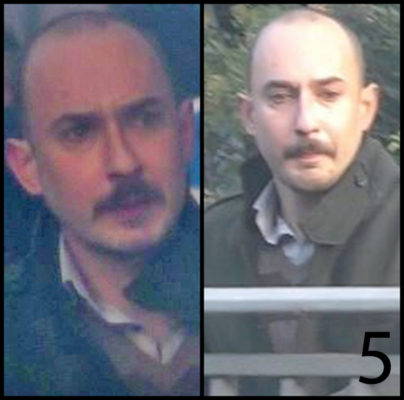 Le 5ème individu a de courts cheveux, une calvitie et une moustache. Au moment des faits, il portait une chemise claire et un long manteau kaki.