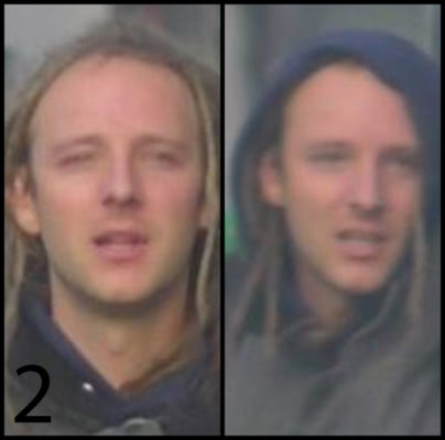 Le 2ème individu a de longs cheveux blonds. Au moment des faits, il portait un sweat bleu à capuche et une veste grise.