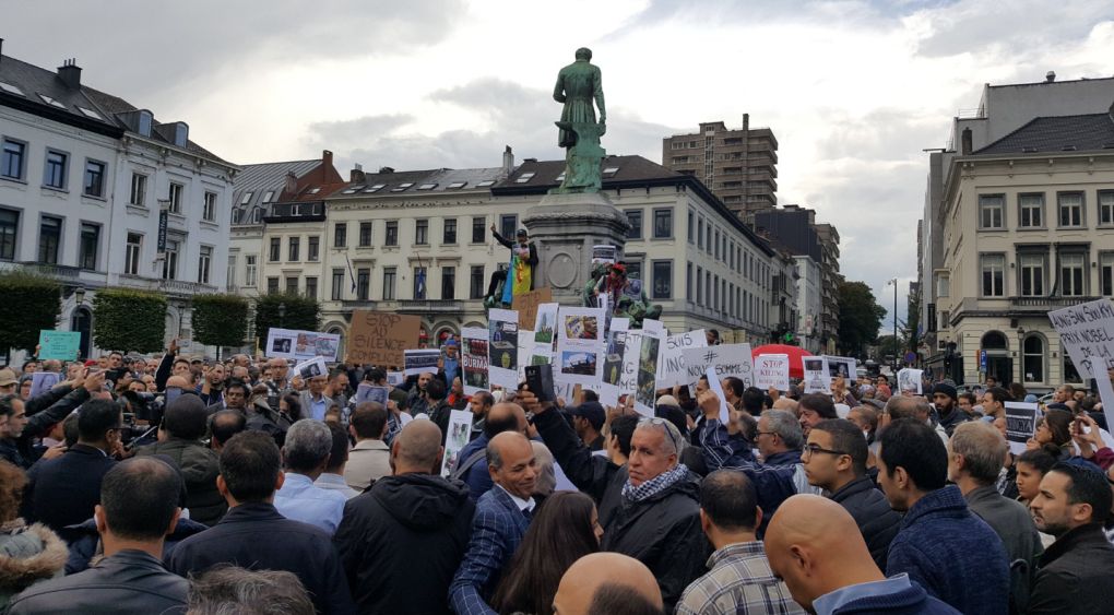 Un millier de manifestants s’est réuni samedi devant le Parlement européen, place du Luxembourg à Bruxelles, contre les violences dont est victime la minorité rohingya au Myanmar (Birmanie).