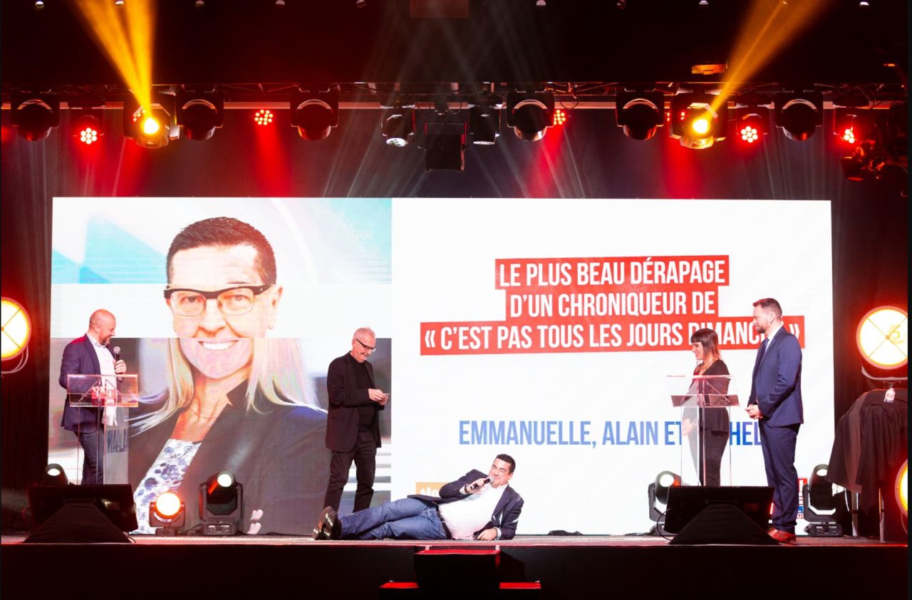 Les autres distinctions obtenues par la chaîne privée sont revenues à Jill Vandermeulen (“animatrice qui a plus de followers sur Instagram que de téléspectateurs”), à Alain Raviart, Emmanuelle Praet et Michel Henrion (“le plus beau dérapage d’un chroniqueur de ‘C’est pas tous les jours dimanche'”) et à Pascal Vrebos et son programme “Les enfants de Cupidon” en immersion chez les échangistes (“l’émission feel good qui met d’humeur légère, joyeuse et guillerette parce que c’est vachement important en ce moment d’aimer son prochain, même si il a découpé sa femme”).