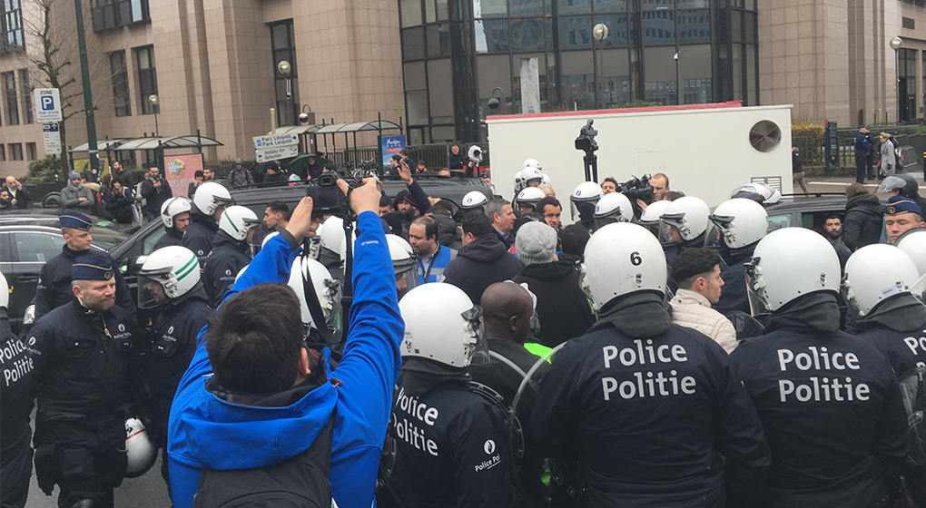 Fernando Redondo, président de l’association belge des chauffeurs limousine, indique qu’une dizaine de ses membres ont été importunés par des manifestants, qui leur ont lancé des oeufs ou qui les ont bloqués. Ilse Van De Keere confirme que des oeufs ont été lancés mais qu’à sa connaissance, il n’y a pas eu de coups échangés. La porte-parole de la police ajoute qu’en fin de manifestation, les policiers ont encerclé le rond-point Schuman pour éviter que des chauffeurs de taxis ne reviennent y mener des actions.