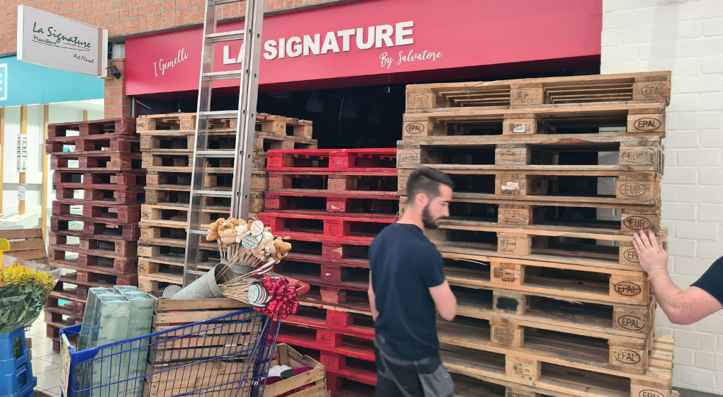 Des palettes pour barrer l’entrée du magasin