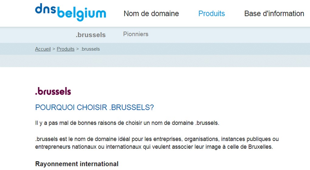 Si le nom de domaine “.brussels” a été lancé en 2015, son histoire commence en 2011, quand DNS Belgium annonce aux trois régions de Belgique (Flandre, Wallonie et Région de Bruxelles-Capitale) ainsi qu’à la communauté germanophone la possibilité de solliciter de nouveaux top-level domain (TLD, domaine de premier niveau). Les gouvernements flamand et bruxellois décident alors de se lancer dans le projet et lancent un appel d’offres public pour trouver un partenaire capable de gérer le processus d’acquisition des nouveaux domaines de premier niveau. L’appel sera remporté par DNS Belgium. En 2012, celui-ci dépose une demande pour “.vlaanderen” et “.brussels”. DNS espère avoir vendu 50.000 noms de domaine “.brussels” d’ici 2025.