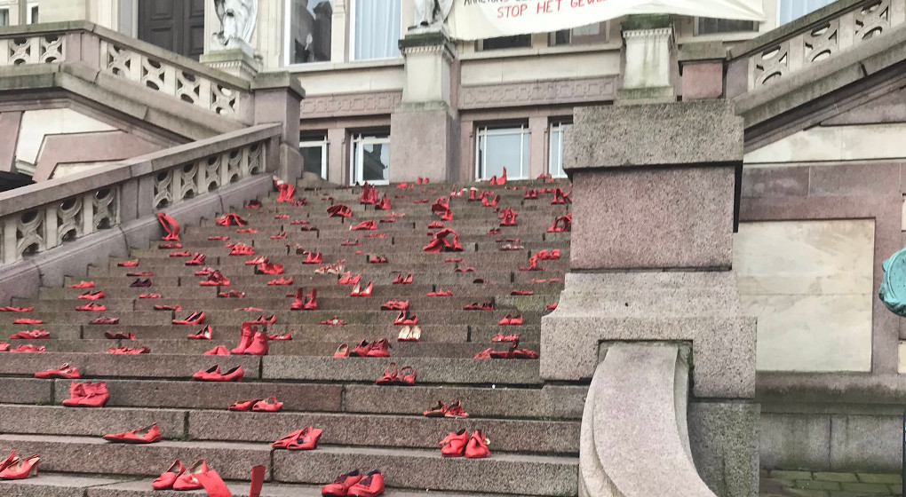 L’oeuvre “Red Shoes” est composée de 230 chaussures de femmes peintes en rouges, disposées sur les marches de la maison communale. Elle est inspirée par l’artiste mexicaine Elina Chauvet, dont la soeur a été tuée par son mari. Ses installations, déjà reproduites en plusieurs endroits, sont devenues un véritable symbole de l’engagement contre les violences faites aux femmes.