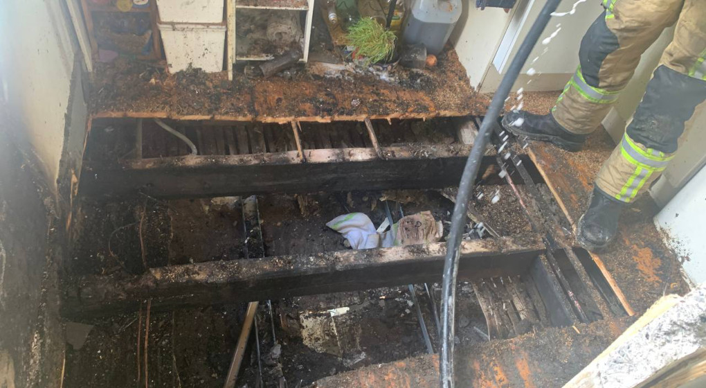 Le plancher en bois de l’appartement sinistré a été endommagé par l’incendie, rendant le logement inhabitable.