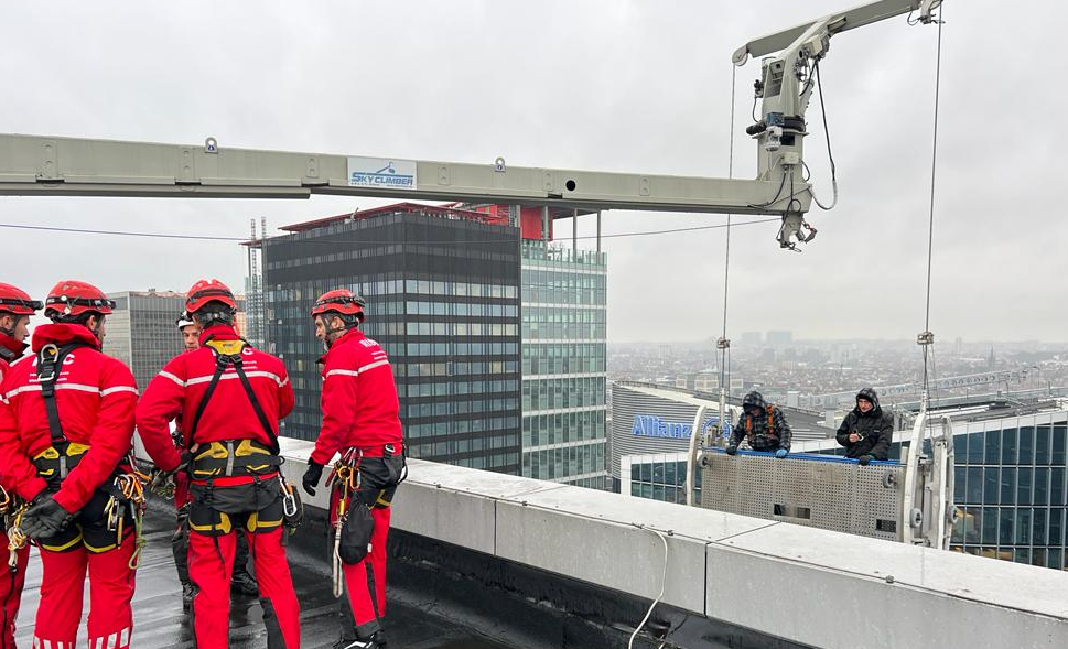 Schaerbeek : deux laveurs de vitres bloqués dans leur nacelle délivrés par les pompiers de Bruxelles