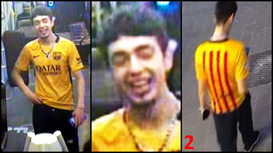 Le 2ème auteur était en possession d’un couteau. Il est de corpulence mince et a de courts cheveux foncés. Au moment des faits, il était vêtu d’un pantalon de training foncé, d’un maillot de football jaune du FC Barcelone avec l’inscription « Qatar Airways ». Il portait une chaine munie d’un pendentif représentant une arme à feu.