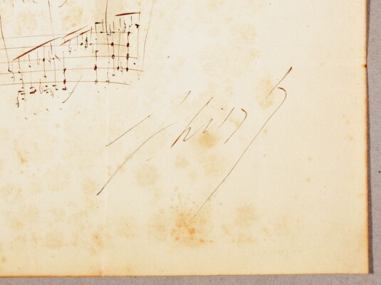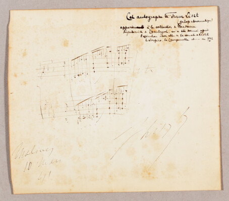 La même collection contient également un feuillet signé par le compositeur hongrois Franz Liszt. Il sera également proposé aux enchères les 14, 15 et 16 décembre prochains.