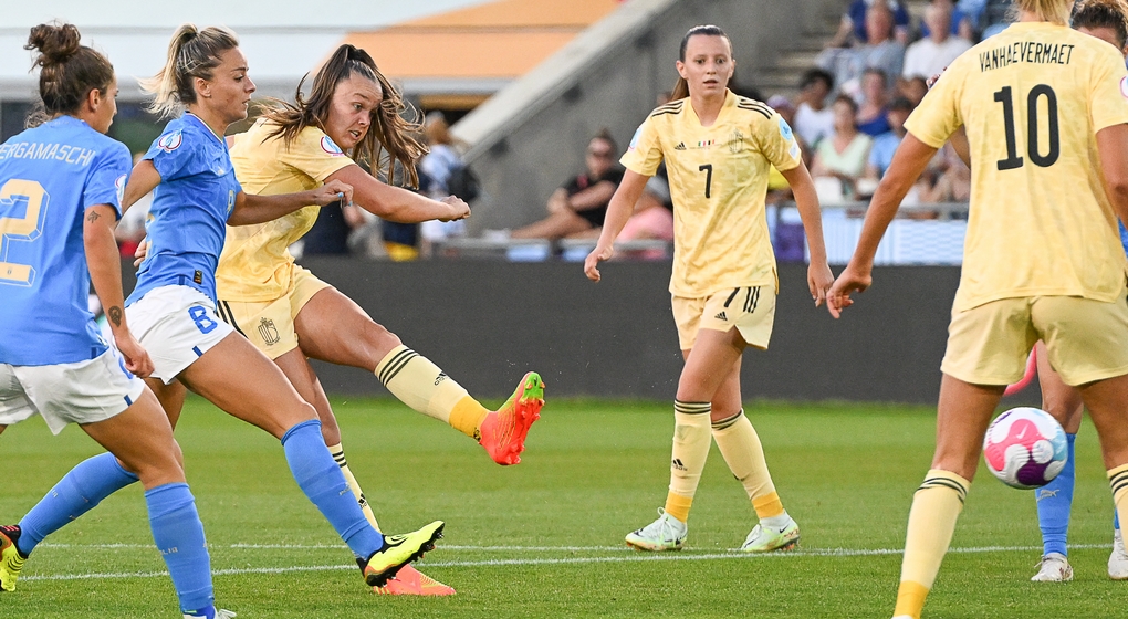 Les Red Flames ont réservé une place en quarts de finale de l’Euro féminin de football en venant à bout de l’Italie par le plus petit écart, 0-1, lundi soir à Manchester. Le but de De Caigny (49e) a permis à l’équipe nationale féminine de réaliser le meilleur résultat de son histoire dans la compétition et de s’en aller défier la Suède pour une place dans le dernier carré.