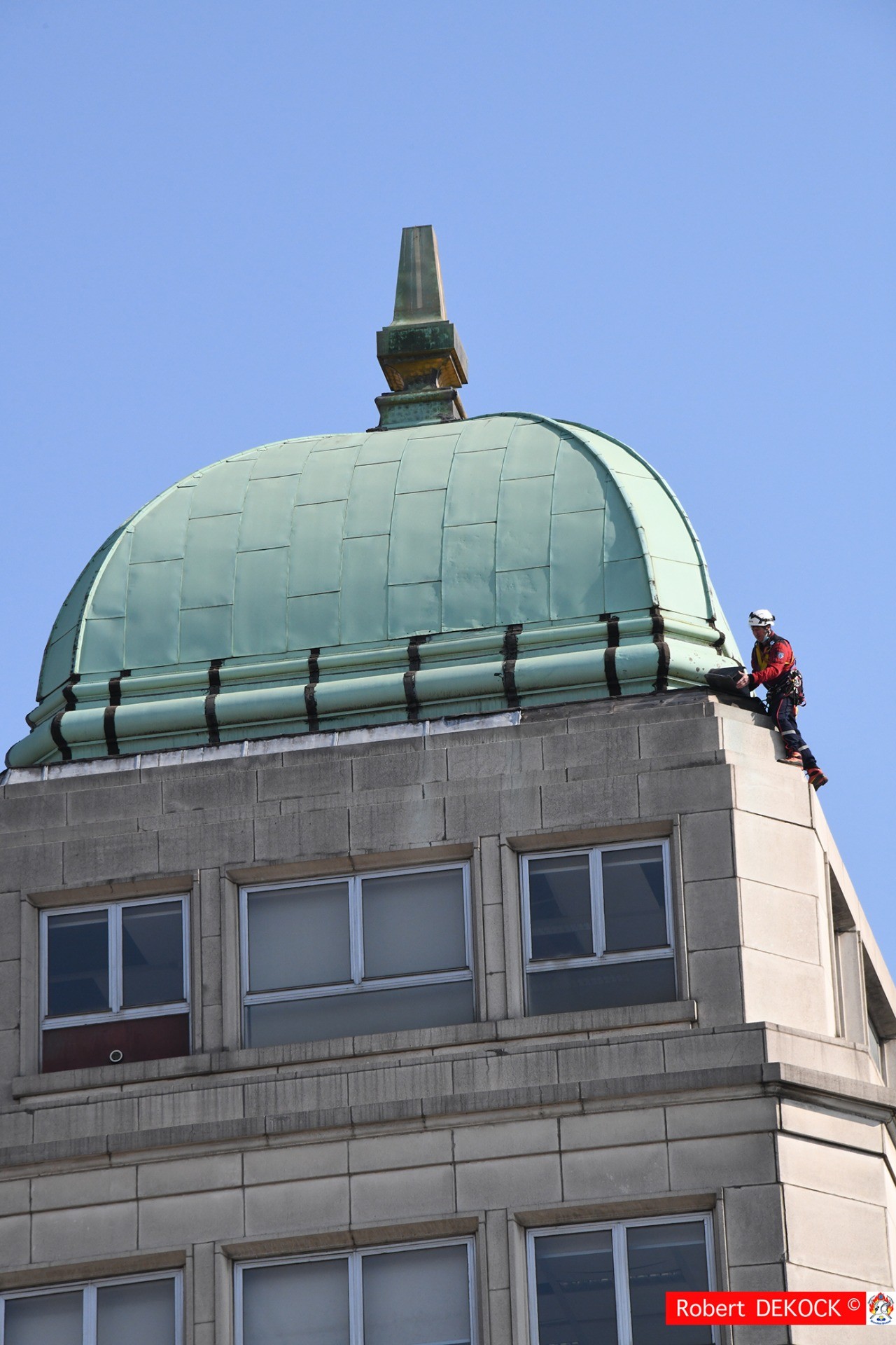 L’équipe RISC (Rescue In Safe Conditions) des pompiers de Bruxelles est intervenue ce vendredi matin sur le toit du bâtiment situé à l’angle du boulevard Anspach et de la rue Devaux, près de la Bourse.