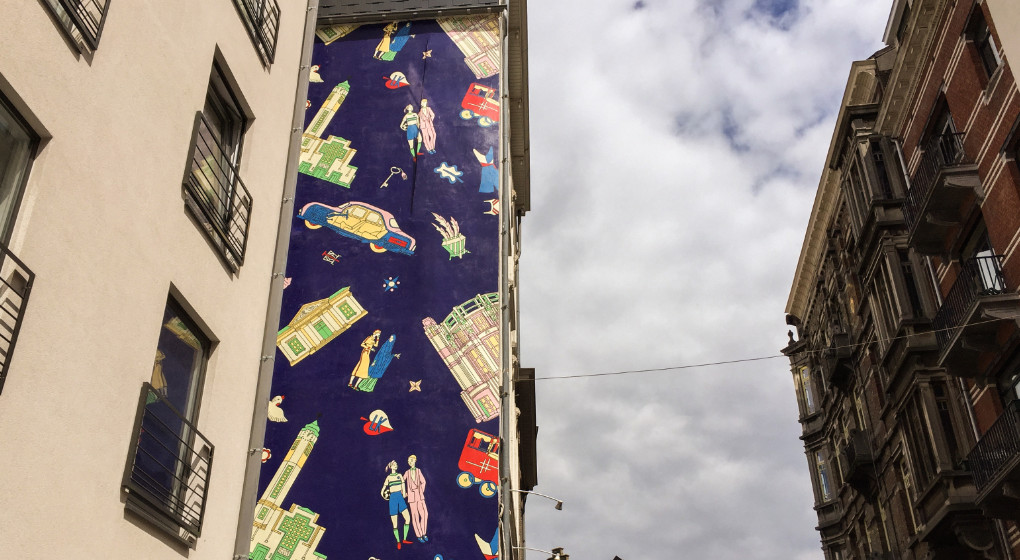 La fresque de Lucy McKenzie est une collaboration inédite entre WIELS et la Ville de Bruxelles et a été commissionnée dans le cadre de l’exposition anniversaire « Le musée absent / Het afwezige museum / The Absent Museum » au WIELS (visible jusqu’au 13 août 2017).