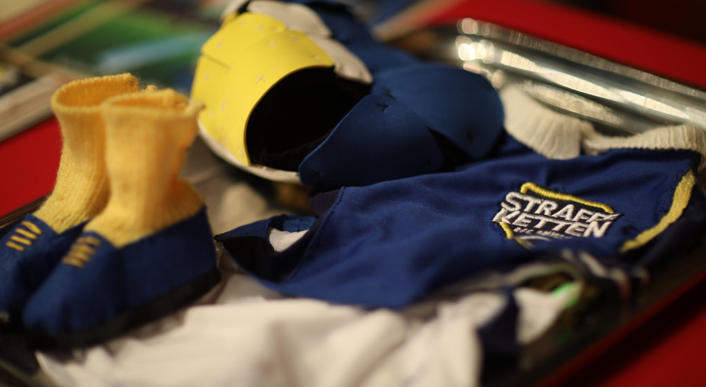 Le club de rugby des Straffe Ketten a offert un costume au Manneken Pis, qui représente leur premier maillot.