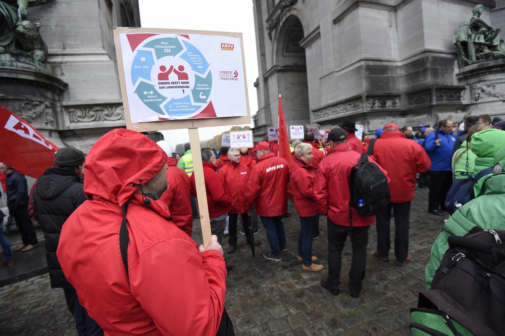 Plusieurs milliers de manifestants affiliés aux trois principaux syndicats ont défilé ce mercredi matin devant les institutions européennes à Bruxelles. Le front commun et la Confédération européenne des syndicats demandent une Europe plus sociale alors que doit se tenir un Sommet social le 17 novembre à Göteborg.