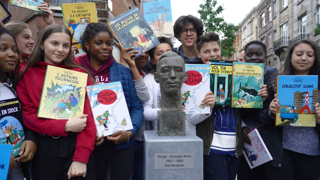 Si Hergé a passé sa scolarité à l’Athénée d’Ixelles et à l’Institut Saint-Boniface, “toutes ses pérégrinations familiales en attestent : Hergé est véritablement un enfant d’Etterbeek. Et jusqu’à présent, seuls l’existence d’une plaque commémorative sur sa maison natale et le nom attribué à notre bibliothèque communale en fournissaient l’indication.” Le buste a été sculpté par l’artiste Nat Neujean. Son fils Bertrand Neuman assure que son père, décédé il y a un an, aurait apprécié de voir ce buste exposé dans l’espace public.