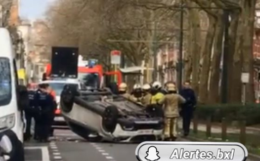 Forest : une voiture finit sur le toit après une course-poursuite avec la police
