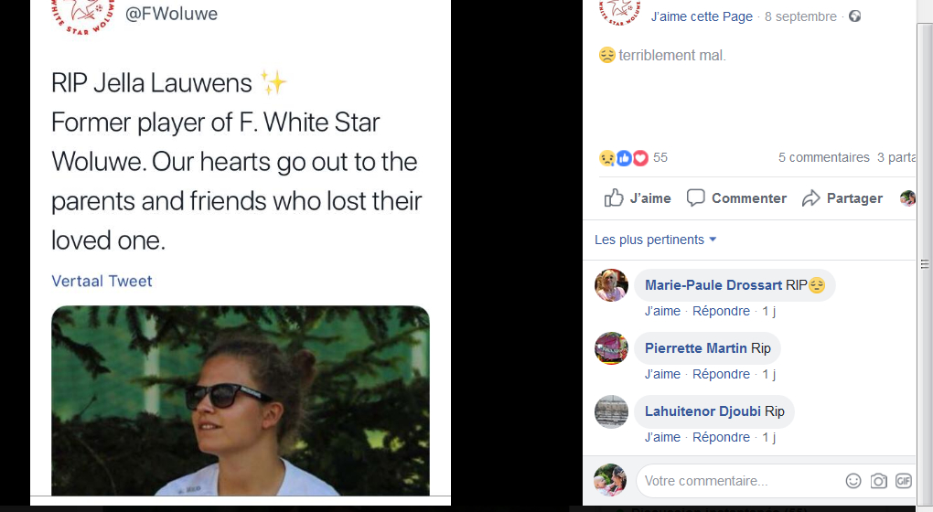 Sur sa page facebook, le club de Woluwe lui rend hommage. “Nos coeurs vont aux parents et aux amis qui ont perdu leur aimée”, peut-on lire sur la publication.