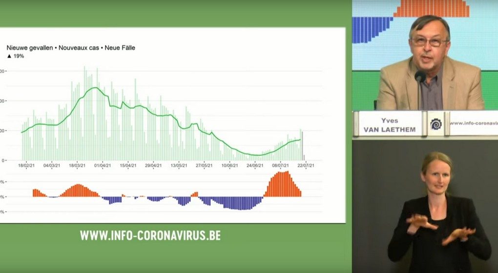 Steven Van Gucht et Yves Van Laethem, porte-paroles interfédéraux Covid-19, ont confirmé durant le début de cet été une hausse continue des nouveaux cas de contaminations au Covid-19, mais cette hausse se veut plus faible depuis quelques jours. “Le rythme de cette hausse est de plus en plus lent. Espérons que ce soit la fin proche de cette flambée que nous avons connue depuis quelques jours“, commente Yves Van Laethem, qui souligne également un taux de vaccination important et une mortalité bien plus faible que la moyenne européenne. La Belgique se trouve au milieu du peloton européen concernant le nombre de nouveaux cas.