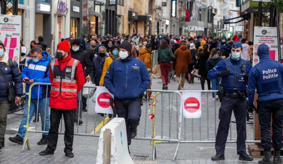Au vu de la fréquentation, fermeture de l’accès à la Rue Neuve par la place de la Monnaie. Portez le masque, venez faire votre shopping seul, respectez les consignes des stewards dans les files, et consultez le site https://t.co/5dRjMgxdZU pour connaitre l’affluence #COVID19