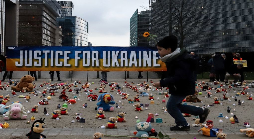 Des jouets et ours en peluche disposés à Bruxelles en hommage aux enfants ukrainiens 24 février 2023 Consulter l'article "Des jouets et ours en peluche disposés à Bruxelles en hommage aux enfants ukrainiens"
