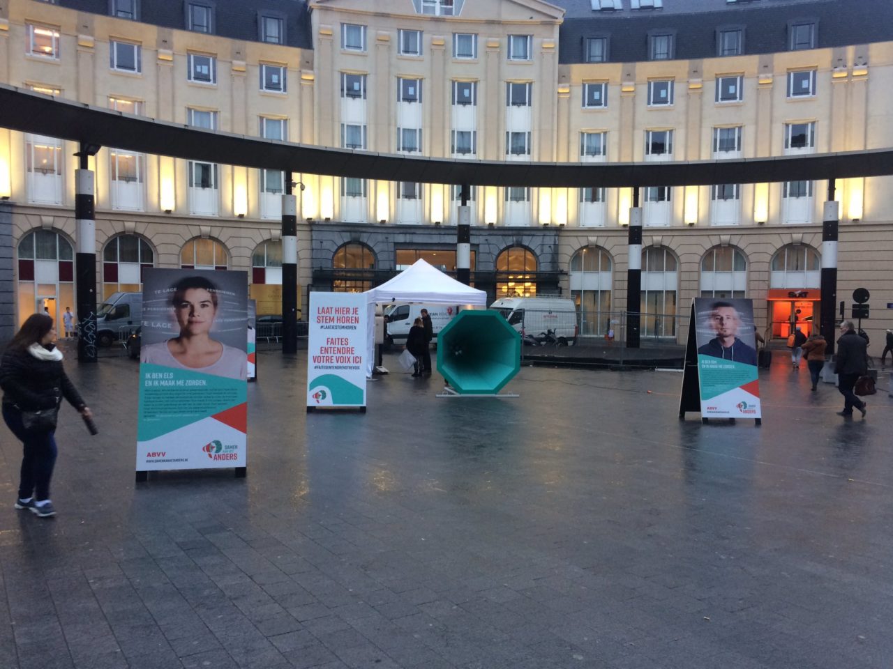 La FGTB installe un porte-voix géant devant la gare centrale 29 novembre 2017 Consulter l'article "La FGTB installe un porte-voix géant devant la gare centrale"